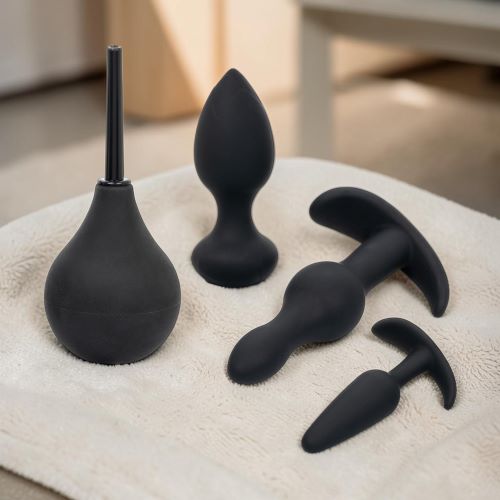 A travel-sized anal douche rounds out the kit, holding up to 3 fl. oz. (90 mL) for clean, confident play anytime, anywhere.