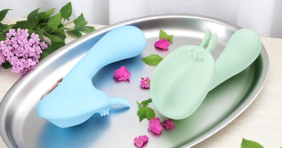 A petite flexible shaft moves with you and starts slim then flares out to bulbous angled tip. The pad style base offers light texture on one side, a raised center ridge plus pleasure nubs on the other, and fluttering ears at the top.