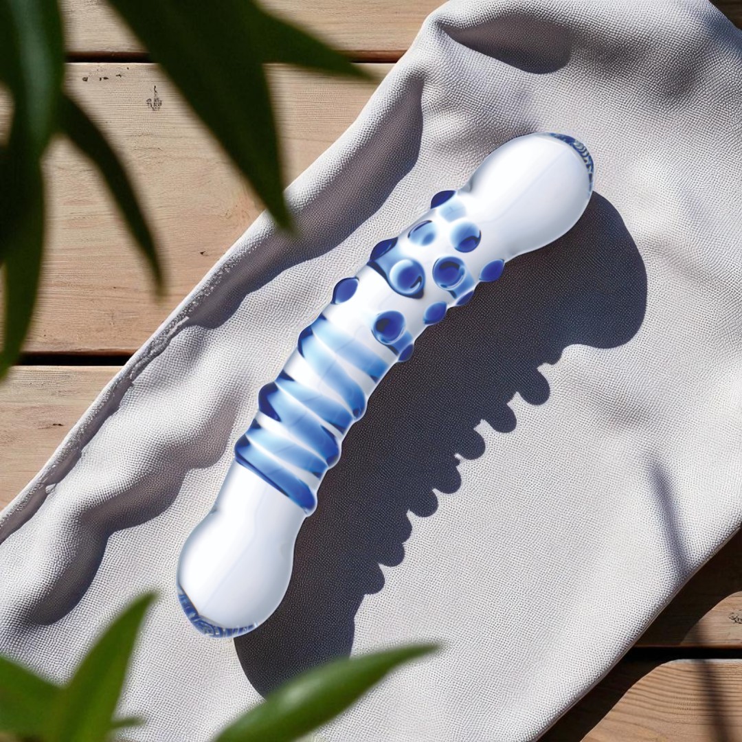 Experience both sensual textures when you play with the incredible erotic Prisms Erotic Glass Blu stimulator.