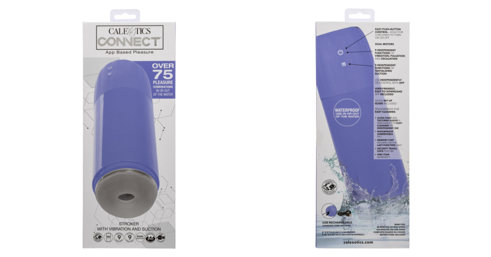 The USB rechargeable CalExotics Connect Stroker is waterproof for fun in & out of the water and easy cleanup.