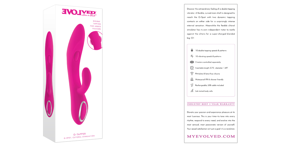 Discover the extraordinary feeling of a double-tapping vibrator with the G-Tapper by Evolved.