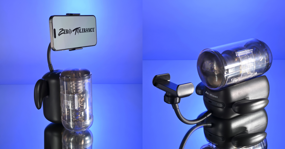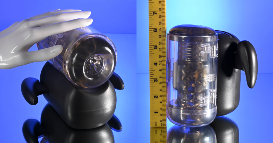 Get a comfortable grip on the gaming-style handles on either side while you watch a complimentary erotic movie on your phone that conveniently attaches to the end of the toy.