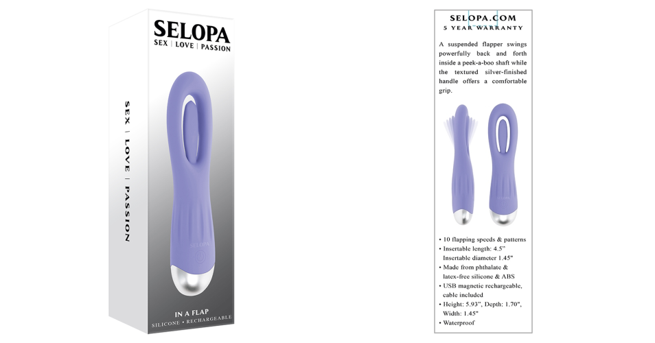 The USB rechargeable In A Flap is waterproof for fun in & out of the water and easy cleanup.