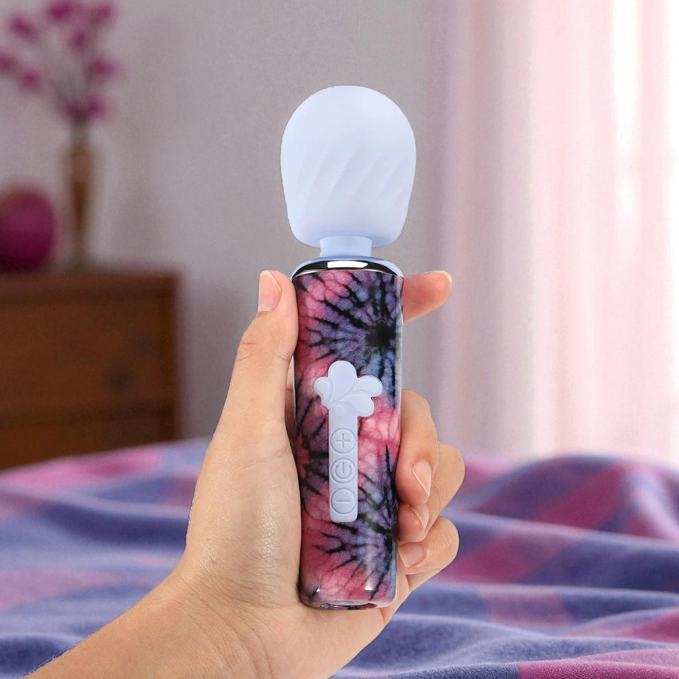Wrapped in 100% medical-grade silicone and adorned with a stunning Tie-Die printed handle, this wand is not just a treat for the senses but also a powerhouse of pleasure.