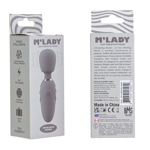 The USB rechargeable M’Lady Tiny Vibrating Wand is rated IPX6 splashproof/ showerproof for easy care and cleanup.