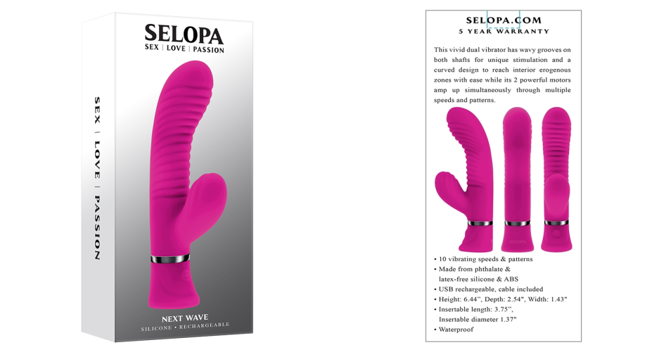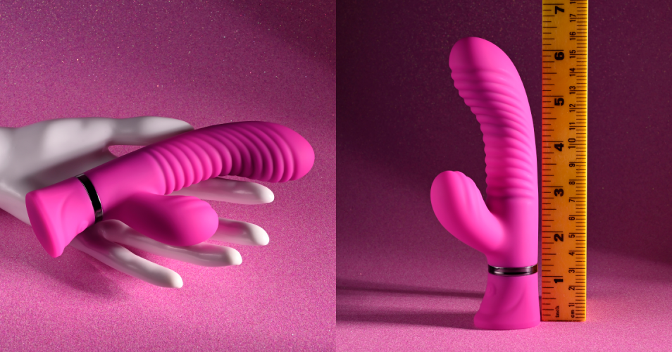 The vivid Next Wave dual vibrator has wavy grooves on both shafts for unique stimulation.