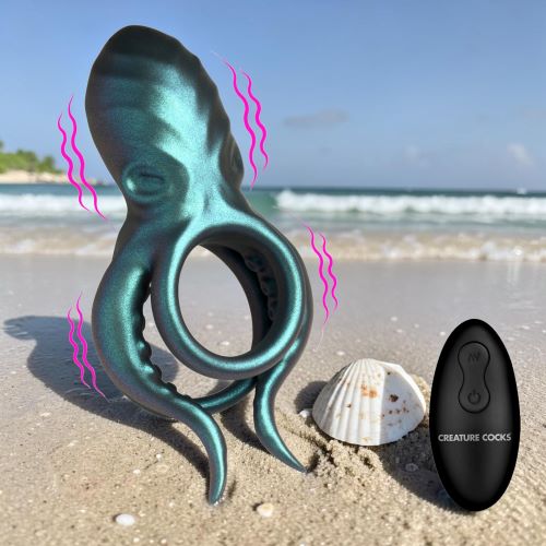 Dive into your wildest oceanic fantasies with the Octo-Grip Vibrating Silicone Cock Ring!