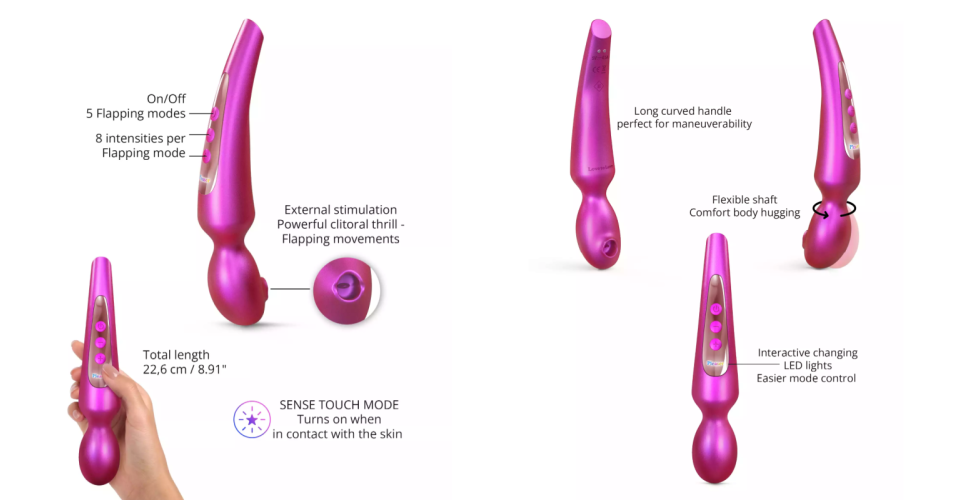 When it comes to grip and feel? It’s pure comfort. Its wand shape and long, perfectly curved handle feel like a natural extension of your hand. Add in a flexible neck and boom – it moves with you, not against you, for max smoothness and precision. Whether you’re flying solo or getting cozy with someone else, the handling is seriously on point.
