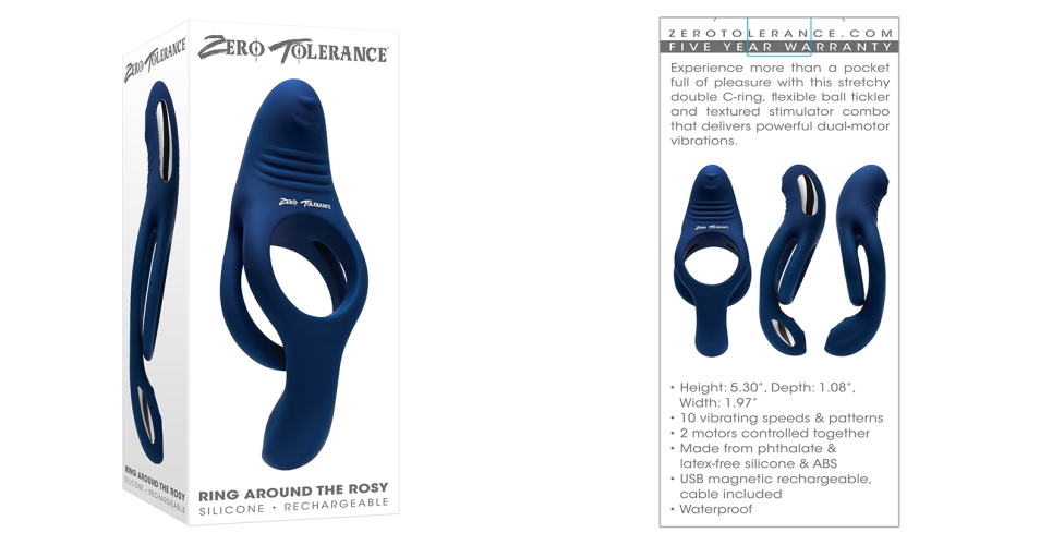 Experience more than a pocket full of pleasure with the stretchy Ring Around The Rosy double C-ring, flexible ball tickler and textured stimulator combo that delivers powerful dual-motor vibrations.