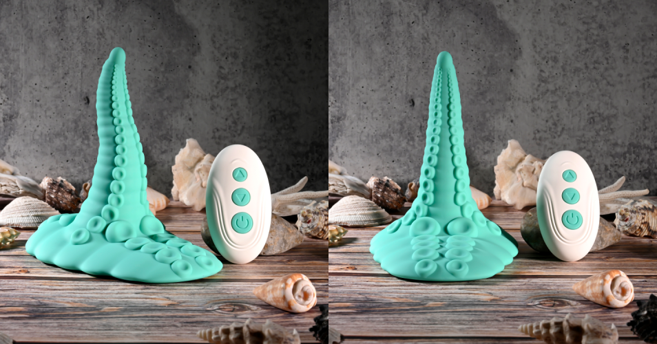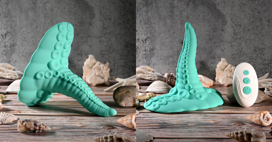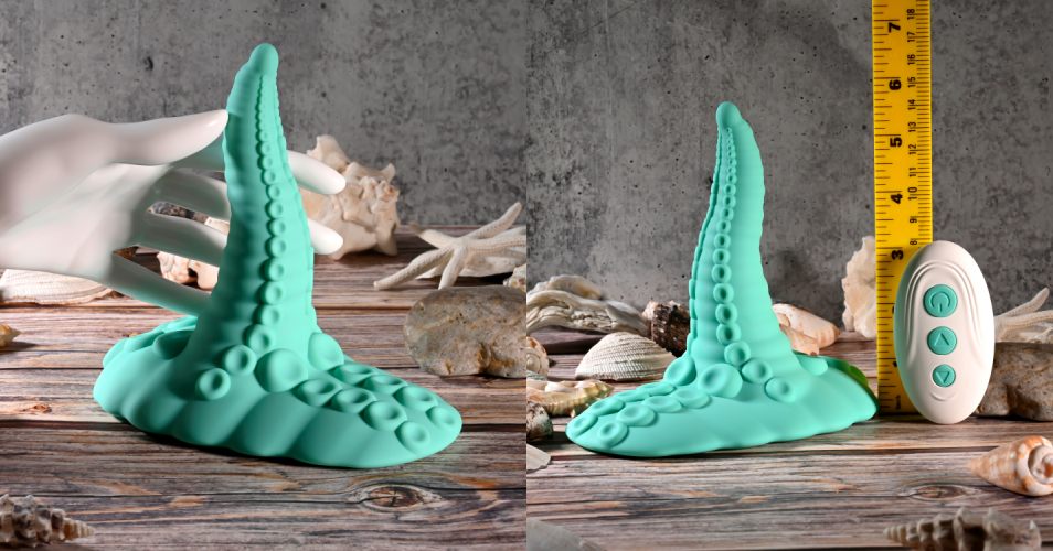 This unique suction-cup toy features a flexible tentacle with dozens of rounded “suckers” and ribs along a curved shaft that ends in a gently rounded tip.