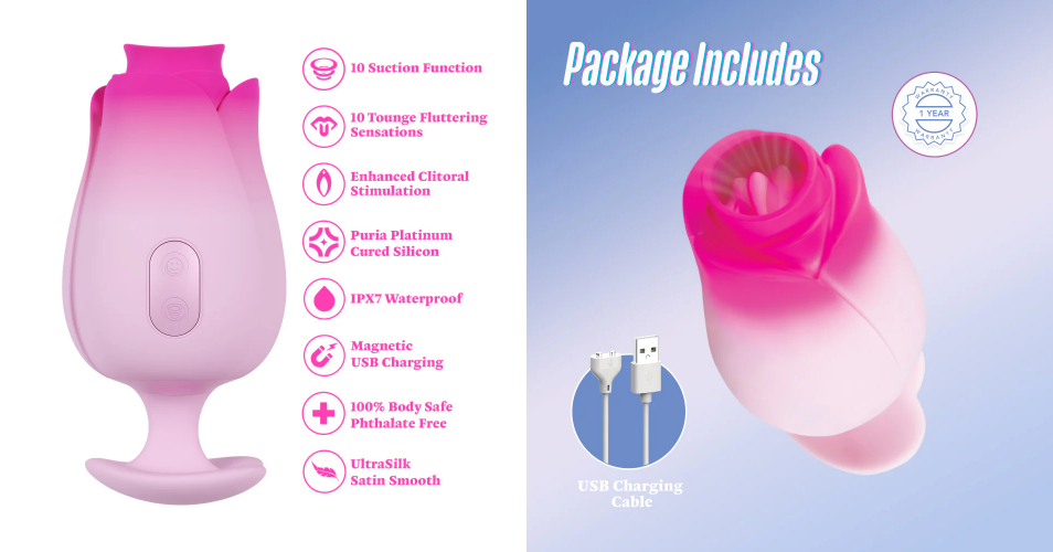 Inspired by the elegance of a blooming tulip, this innovative massager features ten sensual sucking and tongue-fluttering sensations, delivering soft, precise stimulation for clitoral and nipple play.