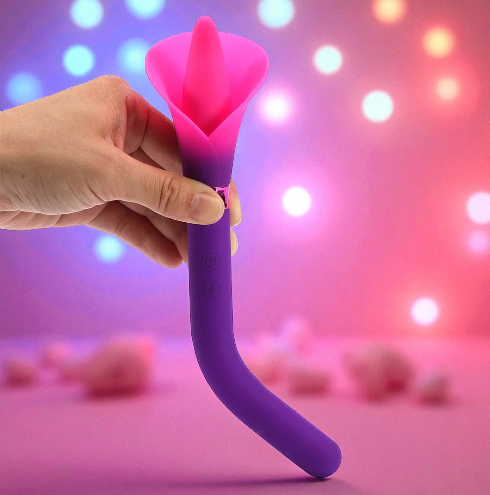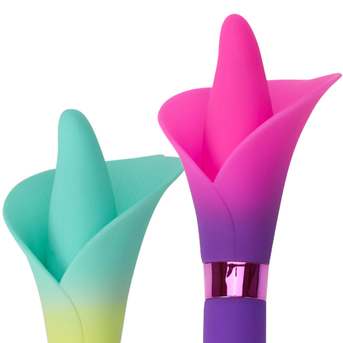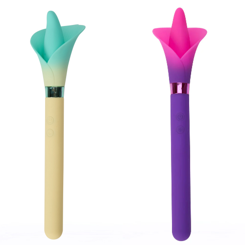 At the flower end, the thick center stamen tapers at the tip for targeted stimulation, while the petal flutters to tease and please.